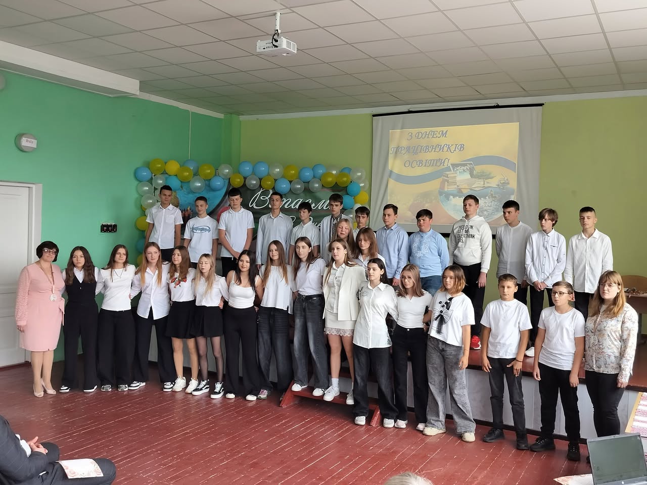 День працівників освіти у нашій школі 03 жовтня відбулося особливе свято – учні 9-А та 9-Б класів підготували теплу та щиру святкову програму до Дня працівників освіти . Цей день став справжнім святом вдячності тим, хто щодня дарує дітям знання, виховує у них добро, мудрість і любов. У програмі звучали мелодійні пісні, які зворушили серця, були запальні танці, що зарядили всіх позитивом, а також щирі слова подяки за терпіння, доброту, підтримку та безмежну відданість своїй справі . Атмосфера свята була наповнена теплом, радістю та щирими посмішками