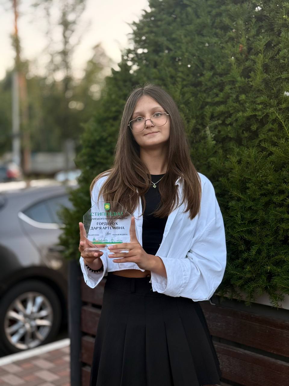 Щиро вітаємо Гордійчук Дар'ю, ученицю 8-Б класу з отриманням стипендії міського голови. Пишаємося та бажаємо подальших успіхів у навчанні та житті!